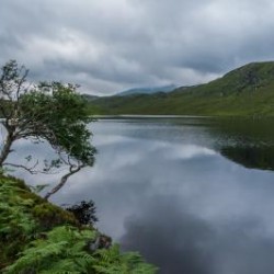 Ayant quitter le sentier la veille pour atteindre les sommets et échapper aux insectes, nous coupons dans le wild pour rejoindre la trace qui longe le Loch Garbh Bhaid Mor. Le ciel est couvert mais la température idéal, ni trop chaud, ni trop froid. La trace nous amène jusqu’à un cours d’eau que nous devons traverser à gué. Ce sera la seule fois que l’on devra enlever les chaussures. Le climat plutôt sec qui a précédé notre arrivée a pratiquement tari les nombreux ruisseaux de la région. En effet dans le guide, il semblerait que nombreuses sont les rivières pouvant être affranchissables!