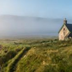 Une brume magnifique a envahi la vallée ce matin. L’ambiance est mystique. J’en profite pour sortir et prendre de nombreux clichés de la rosée qui s’est formée sur les herbes hautes. Peu à peu la brume se dissipe laissant apparaître le Loch An Daimh. Le soleil perce le brouillard et le ciel bleu apparaît. C’est splendide.