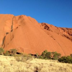 On est en retard sur le carnet de route car on a été très occupé ces 2 derniers jours. On est parti de Sydney pour atterrir à Ayers Rock. Depuis notre avion, on a vu le désert et, surprise, le rocher sacré. Arrivée vers 13 heures sur un tout petit aéroport au milieu de rien. On a cru que c'était un Mac Do. On a récupéré nos 2 4x4. Vite, on est allé dans le parc national pour découvrir Uluru. C'est le nom du fameux rocher sacré des aborigènes, une des photos les plus connue d'Australie. Majestueux. Rouge ocre. On a été très impressionné. De loin, on a cru que cela était un gros tas de sable de plus de 5km de Long et 300m de haut. On est monté sur le rocher et on a vu des peintures aborigènes à la fin d'une ballade. Coucher de soleil depuis le balcon de notre hôtel car Tonio avait réservé l'une des très rares chambres donnant sur le rocher.